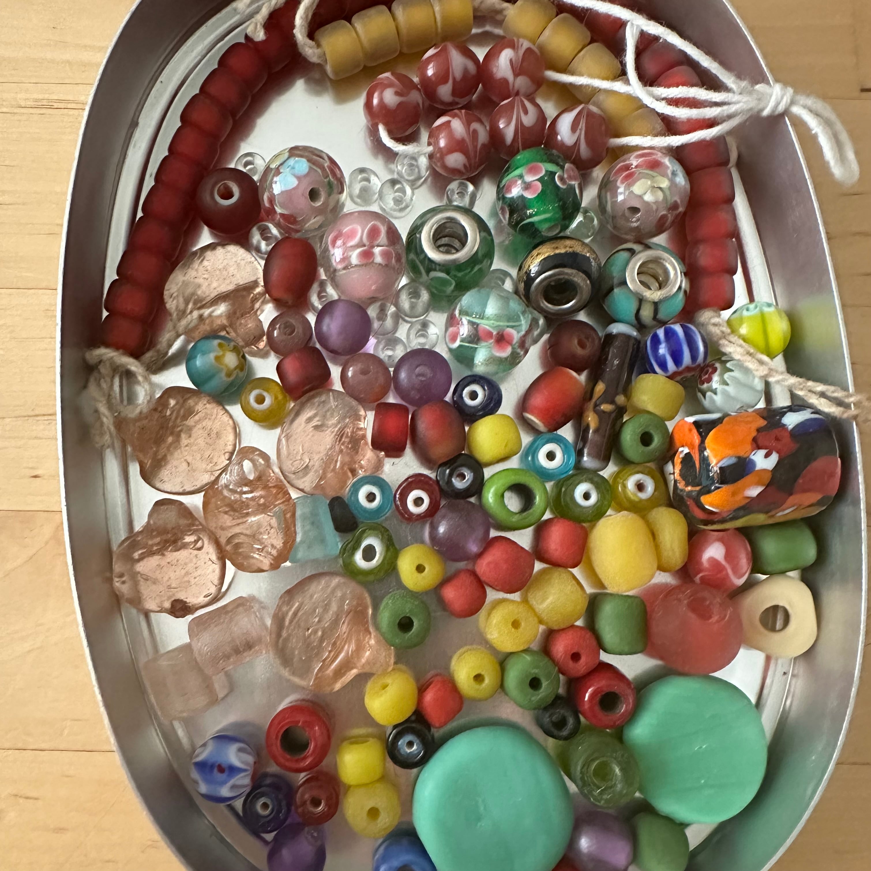 旅先のマーケットで少しずつ集め、大切に保管してきたガラス製ビーズのミックスセットです。