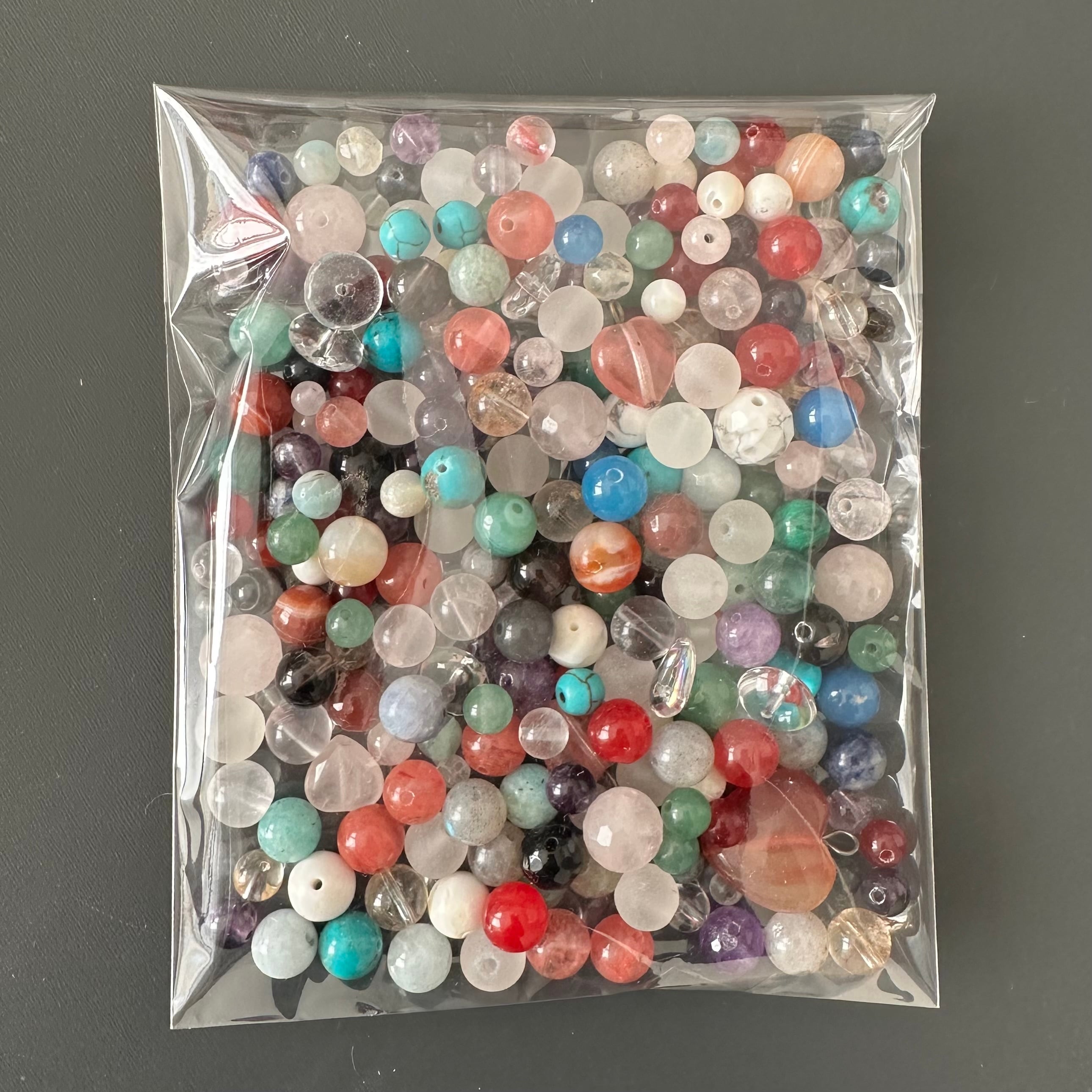 6mm、8mm玉が多いです。天然石ブレスレットなどにおすすめです。
