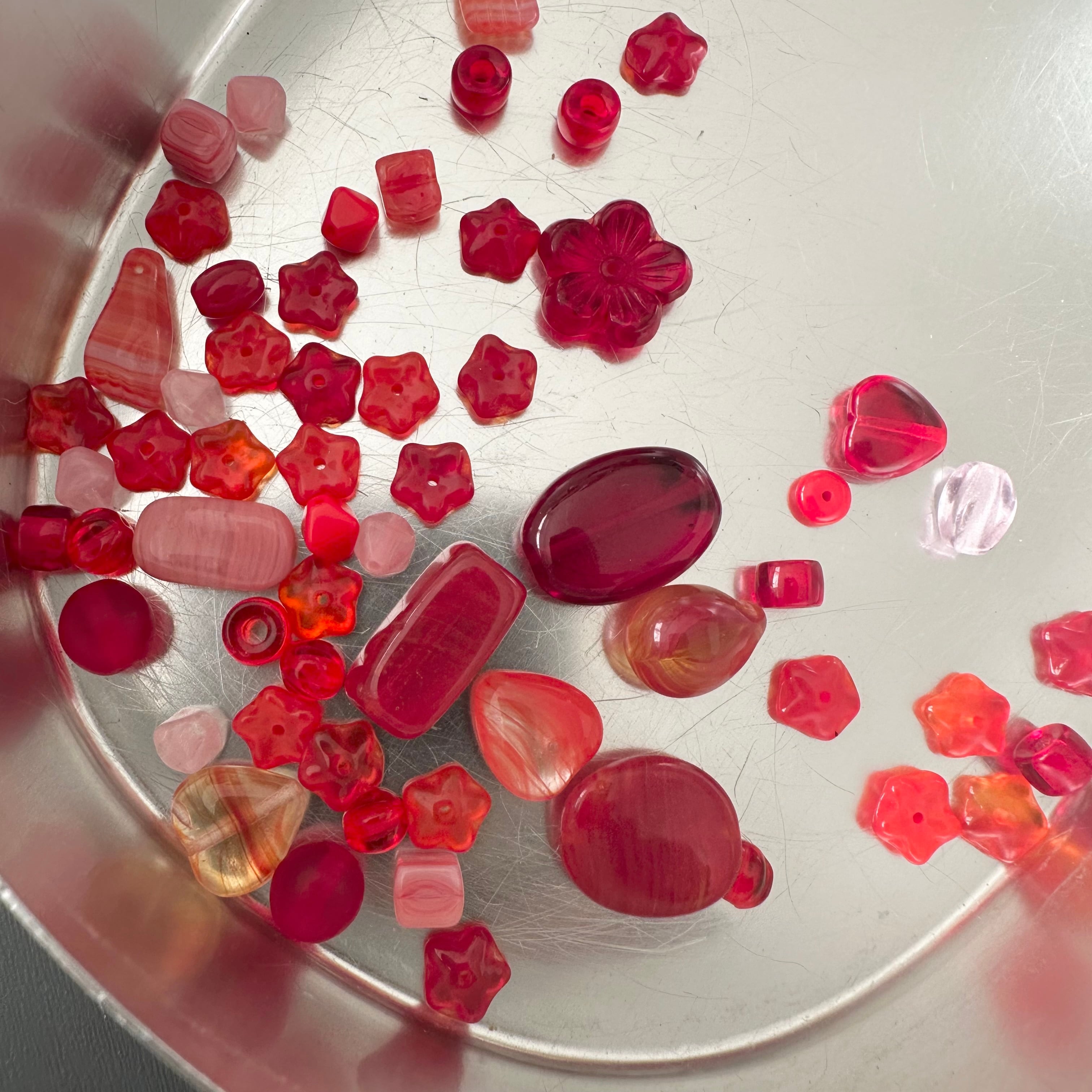旅先で少しずつ集めてきたチェコガラスビーズ、真鍮ビーズ、そして存在感のあるガラスのハートペンダントを詰め合わせたきまぐれセットです。